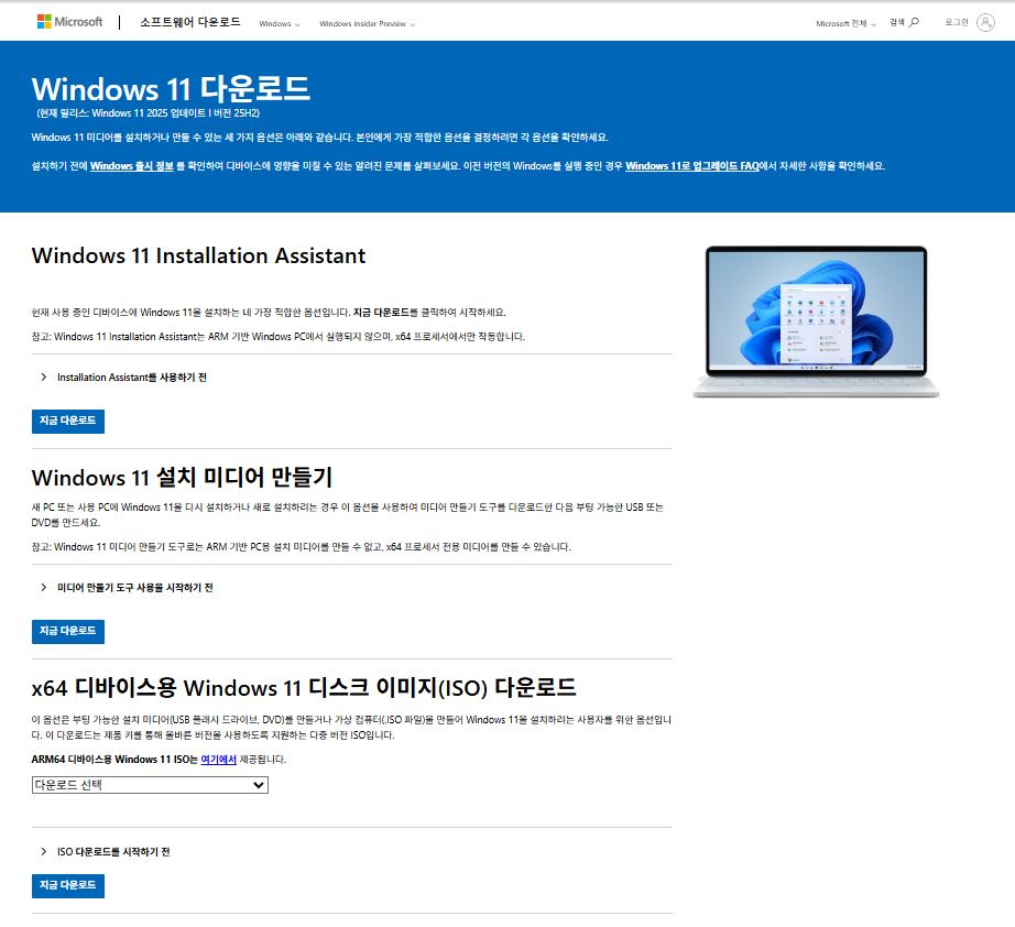 3. x64 디바이스용 Windows 11 디스크 이미지(ISO) 다운로드